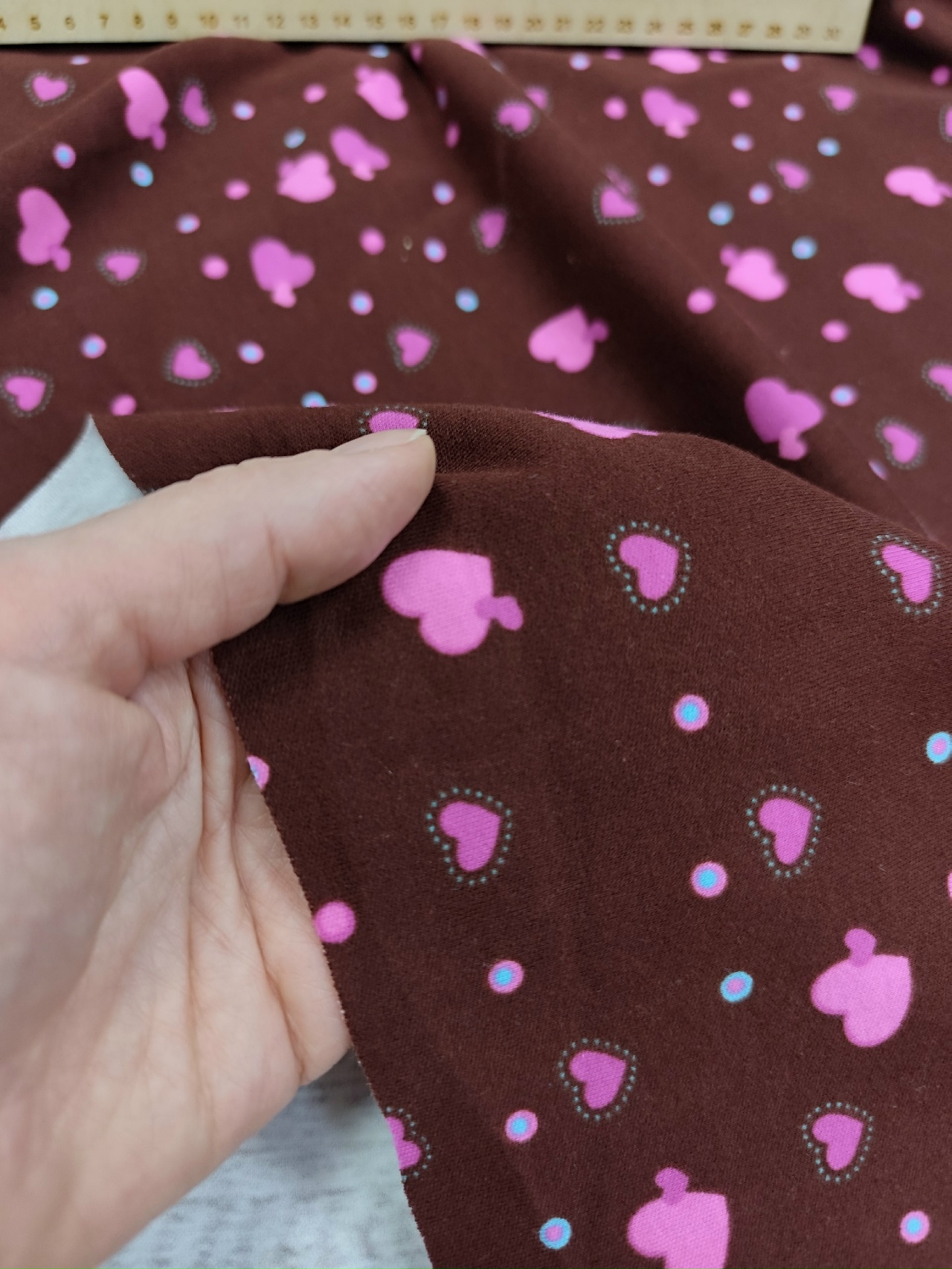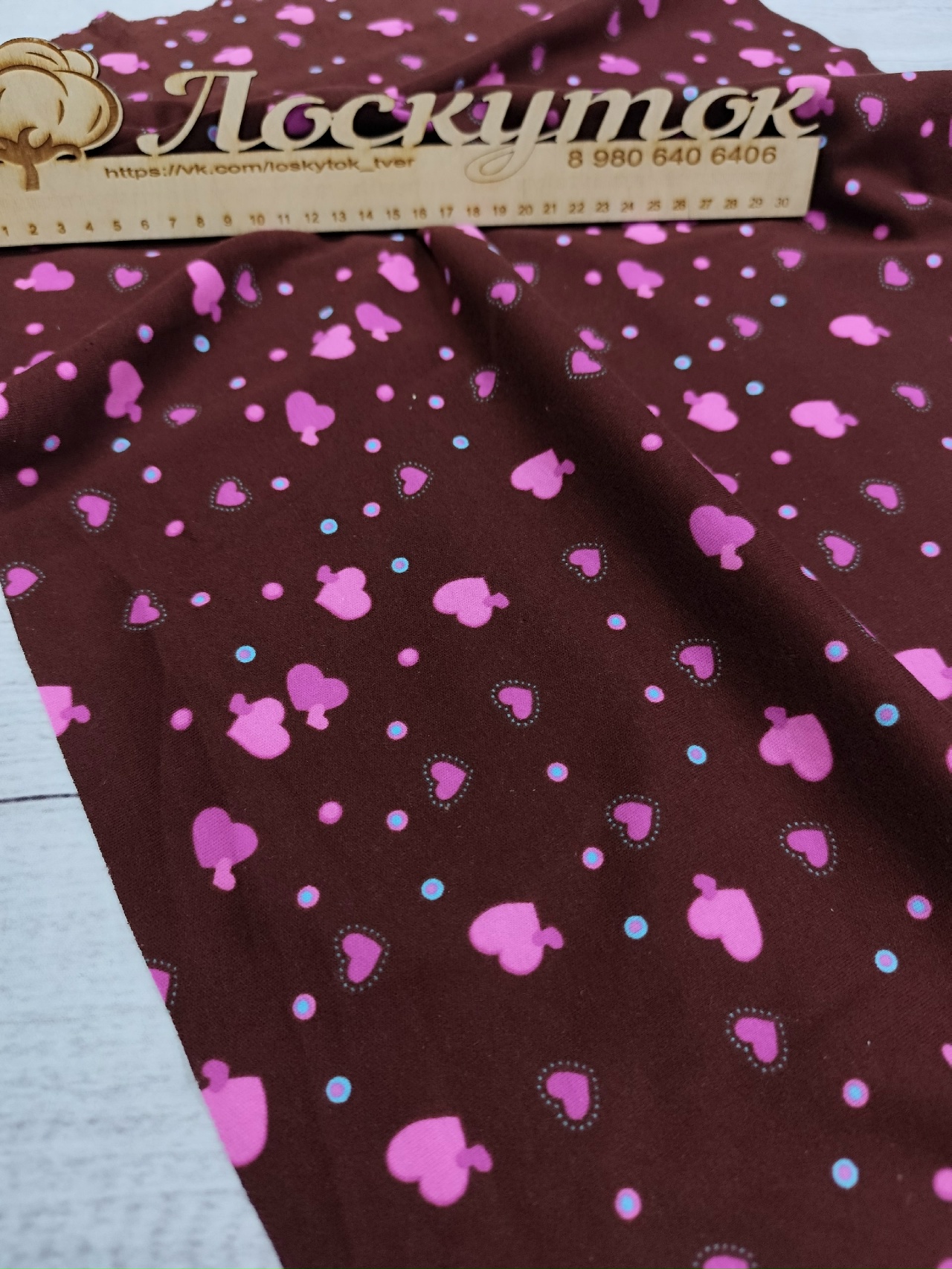 Интерлок / Сердечки на коричневом – купить за 390 ₽ | Лоскуток
