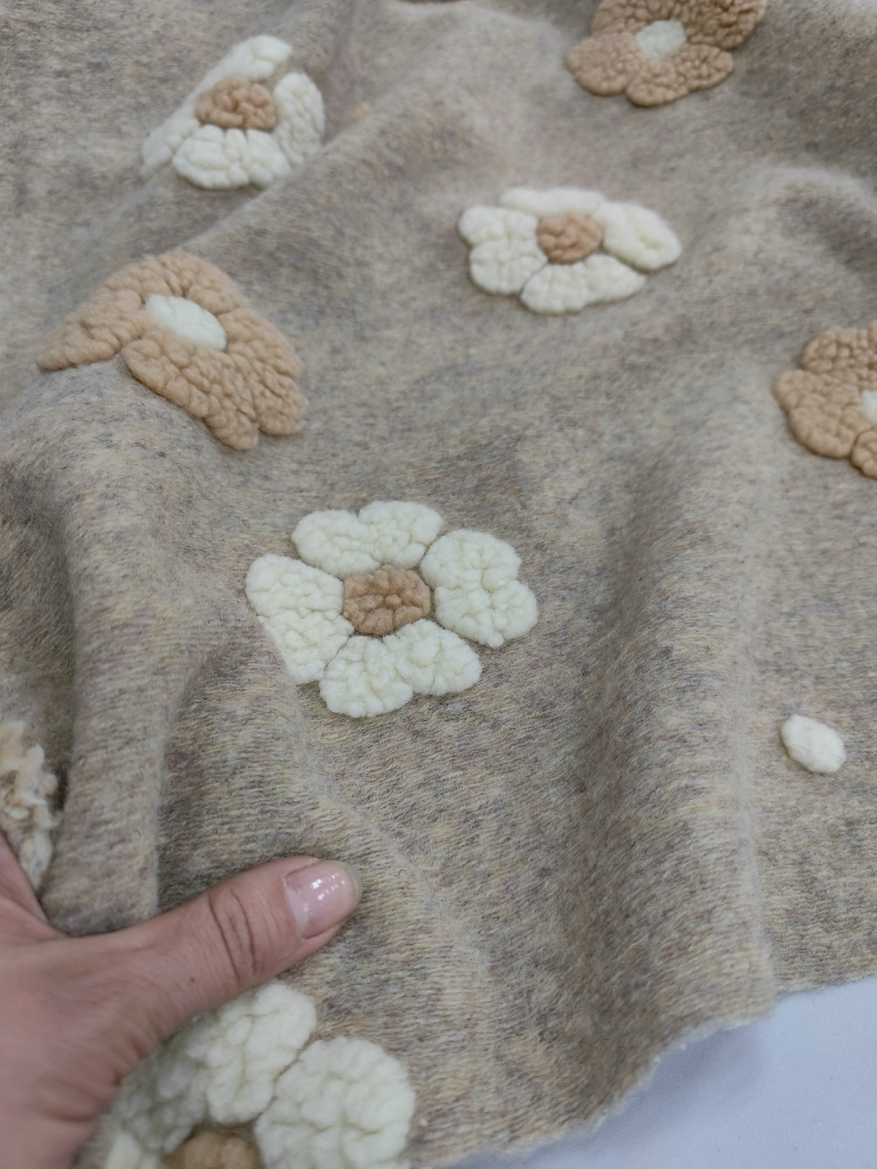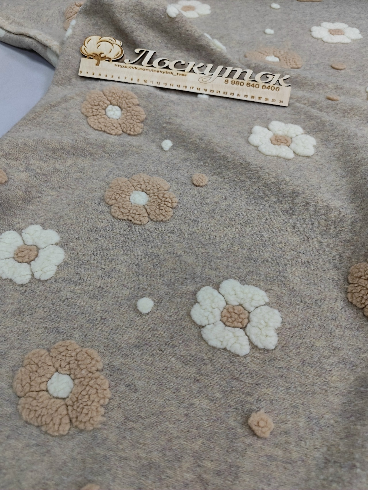 Шерпа с объемным рисунком/ На бежевом цветы – купить за 1 200 ₽ | Лоскуток