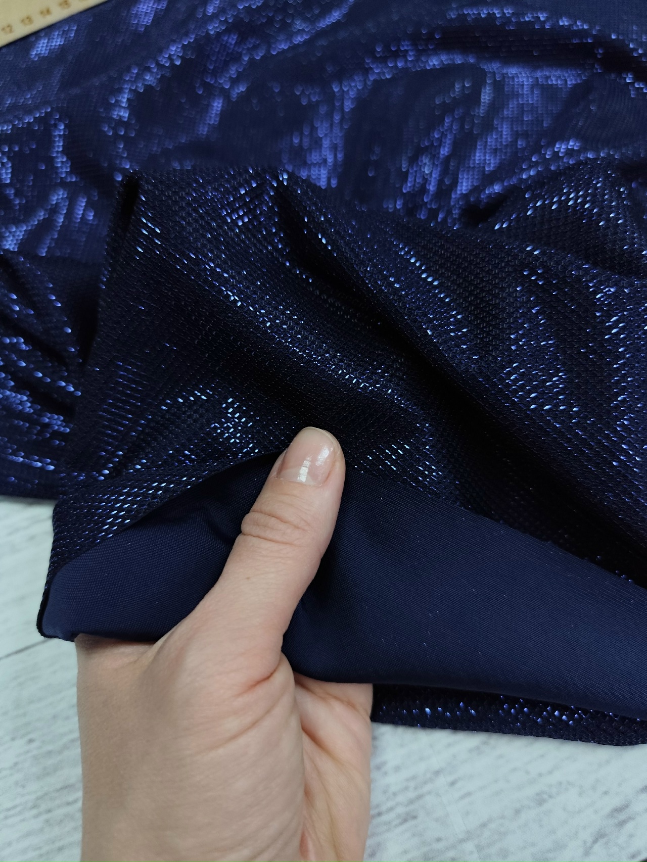Трикотаж люрекс / Т.синий – купить за 500 ₽ | Лоскуток